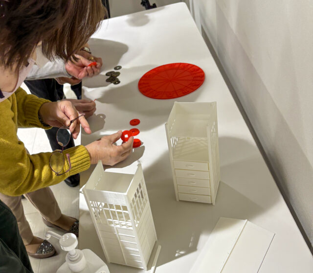 和時計・そば屋台の3D造形物に触れた参加者からは、